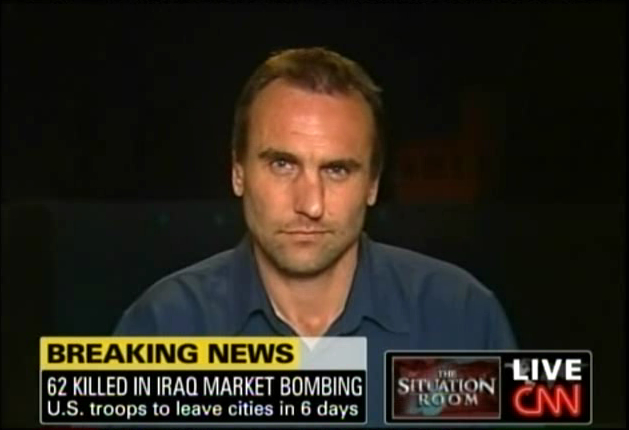 Domestic finally gets Michael on the air, with Wolf Blitzer asking about today's bombings and next week's implementation of the SOFA. Jack Cafferty has his own comment at the end of the piece.