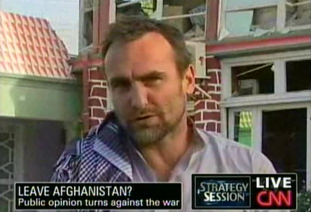 Anderson Cooper holds a "Strategy Session" with David Gergen as well as Michael, who is in an unspecified location in southern Afghanistan. It was not quite 7am there, and it looks like Michael is heading out for a long day of work. [We now know he was in Kandahar, and later this day the truck he was riding in would hit an IED.]