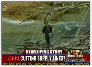 After last night’s raid by the Israelis into the Bekaa Valley town of Baalbek, Michael spent time there today getting a look at the results. Three versions of his recorded piece aired on American Morning, with a video that appears to have been sent by broadband. First is his original version.