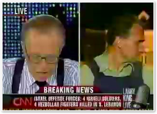 Larry leads off his show with Mick’s off-air reaction to what would have been at least the fourth bomb today. (I hope CNN puts that in one of the commercials. Hey, John Roberts got in last week for his reaction to the artillery launch behind him, it’s only fair!)
