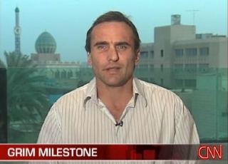 It's just before 6 a.m. in Baghdad, and Rick Sanchez asks Michael to comment on the US death toll in Iraq topping the 4,000 mark. The woman who joins the conversation is Martha Zoller, one of three women Rick had been talking to about Iraq. She makes a valid point as far as not wanting to make the number more important than the lives lost (surely whoever was #3,999 is grieved for just as deeply!) but anyone who thinks that a milestone like that isn't going to be commented upon is just kidding themselves.