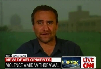 Domestic finally gets Michael on the air, with Wolf Blitzer asking about today's bombings and next week's implementation of the SOFA. Jack Cafferty has his own comment at the end of the piece.