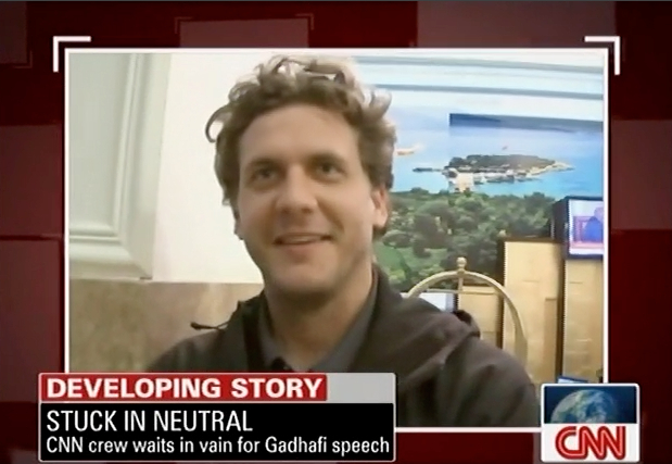 Tommy has had quite a week in Tripoli. Wednesday the media was invited to a hotel to hear Gadhafi speak. They waited, and waited and waited... After more than 8 hours the guy finally appeared, but never did address them. Anyway, around hour four, Nic Robertson recorded this piece for BackStory, getting both Tommy and cameraman Kahlil Abdallah to talk about the experience.