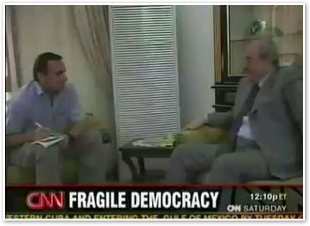 Michael narrates a prepared piece about the current state of democracy in Iraq. He is onscreen only for a quick moment during one of the interviews.