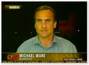 Michael finally puts on a flak jacket! (Now CNN just needs to get him one of the new models the other reporters are wearing...)