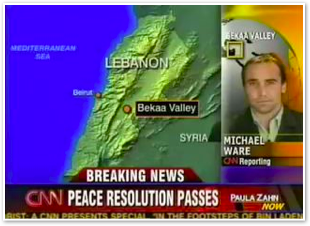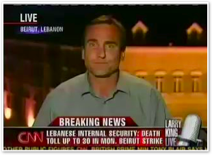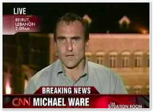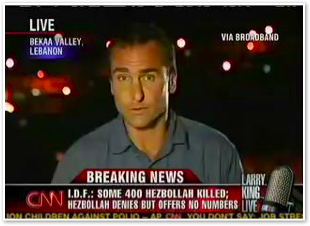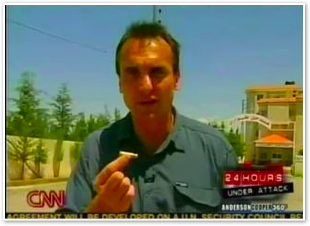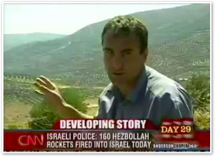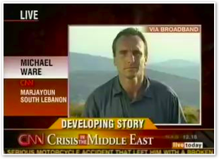We join CNN International in the midst of Michael’s report on the convoy of 1500 vehicles leaving Marjayoun. The cars stream past behind him as he talks about the civilian flight from the fighting.