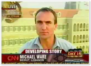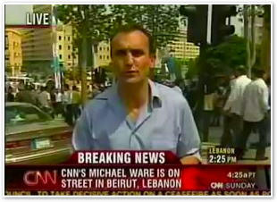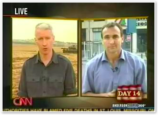 Mick does his first prepared piece for CNN: a trip to a refugee camp of sorts in southern Lebanon where enemies of Israel are given safe haven and the nation’s army and police are not allowed inside. (So of course, the crazy Aussie figures this would be a good place to visit in the middle of a war...) Not only is it a fascinating piece, but he gets to use his FM-DJ voice, do some interviews, and give a walk-and-talk summation. It’s followed by a live interview with Anderson.