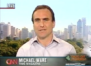 It’s now 12:15 pm local time and he makes his first appearance on AC360, along with Christiane Amanpour (in London). Oddly, Anderson still intros him as being with Time, as do the graphics. I guess the 360 offices aren’t getting all their memos... *g*
