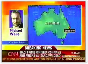 As the news broke about Zarqawi’s death, CNN‘s Miles O’Brien got in touch with Mick in Brisbane. The first conversation was by phone. It was just after 7:30 PM in Brisbane.