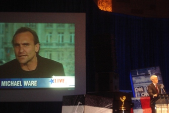 CNN held a big event for advertisers in NYC today, focused around its planned coverage of the presidential election. There were panel discussions and much promotion of all their new technological innovations, etc. One of the photos from the event, posted at mediabistro.com: