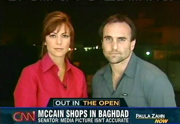 Now, later, McCain accused the news media of not reporting on the improvements in Baghdad under the current troop surge. That prompted some skepticism and even some pushback among the reporters who were there when he made the declarations.