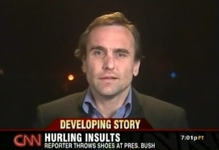 6pm Baghdad time: Michael speaks with Heidi Collins about the reactions on the Iraqi street. 8pm Baghdad time: Michael covers the same with Betty Nguyen and also goes on to discuss how the television station the journalist works for is supporting his release and why the Iraqis are looking to charge the man with throwing the shoes in the general direction of PM Maliki.