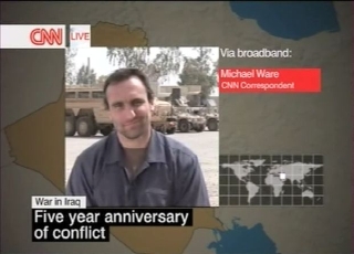 Michael is at a Forward Operating Base in the north of Baghdad and sends a report via broadband as CNN International begins to cover the fifth anniversary of the start of the war.