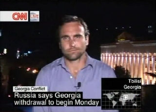 Midnight in the Georgian capital, as everyone awaits the coming pullout of Russian troops, some of whom remain merely 40 kilometers outside the city.