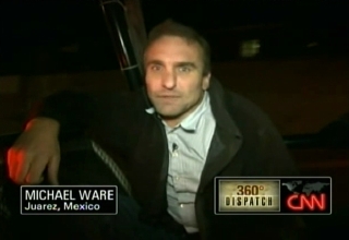 Michael is in Juarez, Mexico, reporting on the drug cartels and their apparent intimidation of a local police chief. The first clip is from CNN.com; the second one is part of a longer piece that ran on International. (Sharon pegged the translator VO in the second piece as Tommy. Good ears!)
