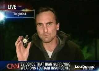 Mick shows the tail fin of a mortar round, built this year in Iran and fired last week from a Shia neighborhood in Baghdad into a Sunni one.