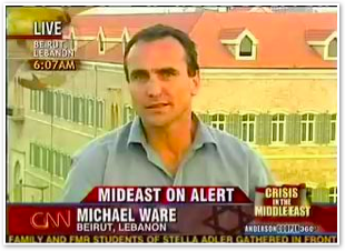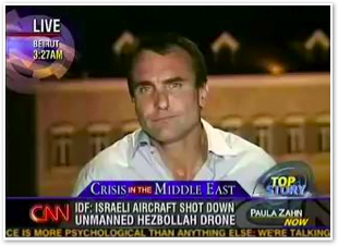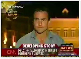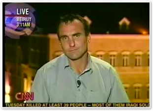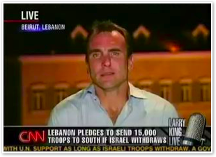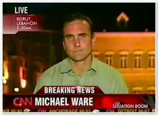 We join CNN International in the midst of Michael’s report on the convoy of 1500 vehicles leaving Marjayoun. The cars stream past behind him as he talks about the civilian flight from the fighting.