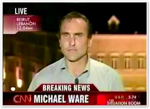 Michael finally puts on a flak jacket! (Now CNN just needs to get him one of the new models the other reporters are wearing...)