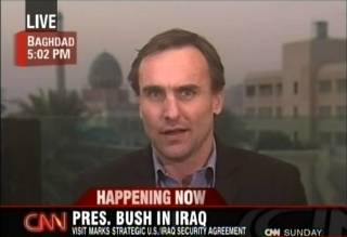 6pm Baghdad time: Michael speaks with Heidi Collins about the reactions on the Iraqi street. 8pm Baghdad time: Michael covers the same with Betty Nguyen and also goes on to discuss how the television station the journalist works for is supporting his release and why the Iraqis are looking to charge the man with throwing the shoes in the general direction of PM Maliki.
