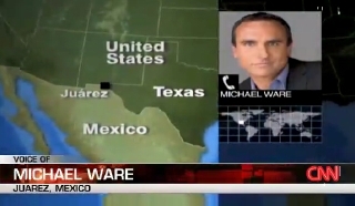 Michael is in Juarez, Mexico, reporting on the drug cartels and their apparent intimidation of a local police chief. The first clip is from CNN.com; the second one is part of a longer piece that ran on International. (Sharon pegged the translator VO in the second piece as Tommy. Good ears!)